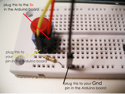 4. The other pin of the button is connected to the black wire which plugs in the Gnd pin on the Arduino