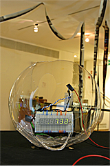 Another quite unusual timepiece was a type of gravity-driven clock desribed in Clocks and Watches 1400-1900 (© 1967 Eric Bruton), the rolling clock, or the inclined plane clock, a drum-shaped device placed on a wedge-like stnd. The drum slowly rolls down the stand over the course of what was usually set as a week. I discovered this photo of such a clock online: