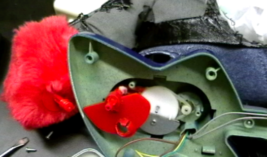 I found Rock Star Elmo at the Salvation Army on 4th Ave. He has definitely seen better days, and his guitar playing mechanism was broken . Still I was interested to see what he looked like in the inside. Here are the picture from the operation.There is no video available of him rocking out because I realized he was broken once I put new batteries 😦