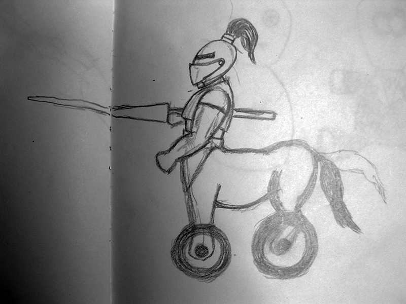 The jousting centaur is built to engage in a joust competition with an opponent. Two pairs of wheels allow him to move forward/backward, turn left/right, which can be controlled with a gamepad. Striking the opponent in the chest earns the centaur points, logs for which are maintained online. He is equipped with a sensor to avoid bumping into obstacles.