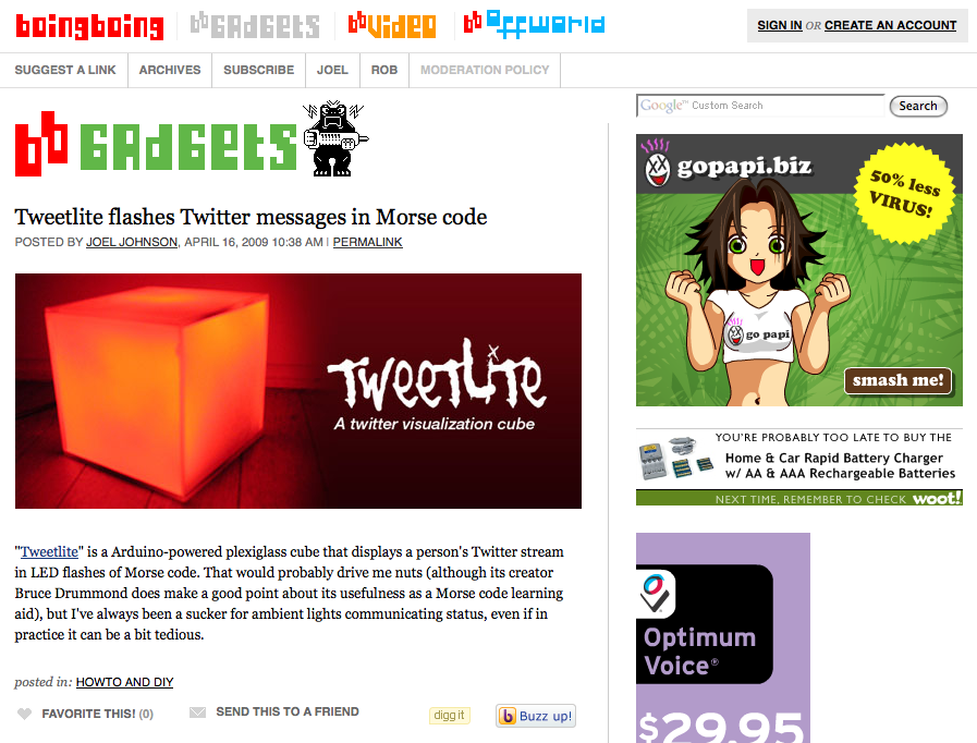 really happy that this got posted. Best of all, they linked to the mapduino project on hackduino.org . This was my response to the comments and the post that i made on the site: