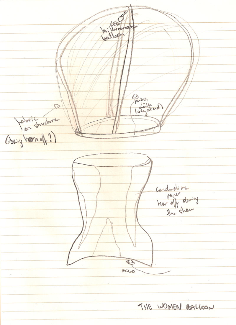 In Michelle's structure, an Led would be on top to illuminate the hole balloon. The Led would fade on and off, visualizing her breath.