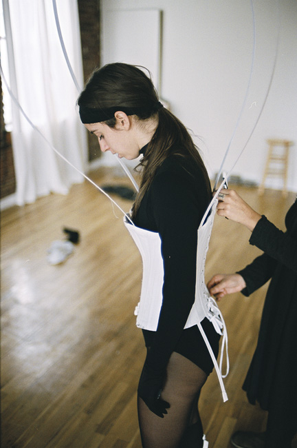 You can watch below their current performance, where in the end Michelle has a microphone in her mouth that display her breathing and other mouth sounds. The system not being stable enough, the you can hear as well the cables moving, which create an interesting sound.