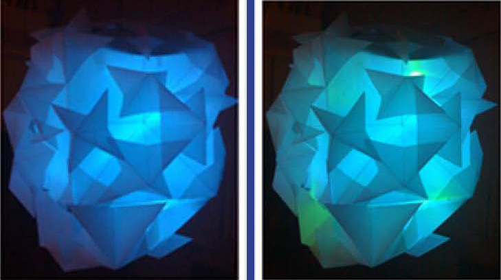 several green and blue LEDs, and cover velum paper to achieve the soft