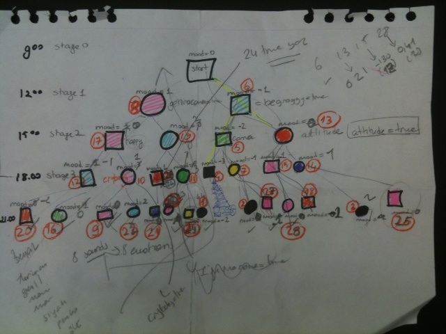 This is Larry, he lives in the closet but he wants to “come out”. He has 8 different states of emotion which would be triggered if certain(14 !!) scenarios are active.