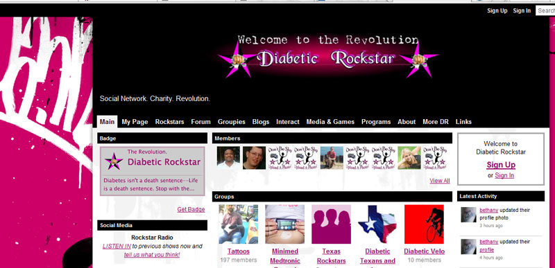 The Diabetics Rockstar webpage. It’s a social network with music playing from the site. A bit over-the-top.