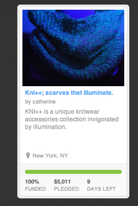 Kni++ is a collection of experimental knit accessories which reflect or emit light to heighten driver awareness of commuters at night.