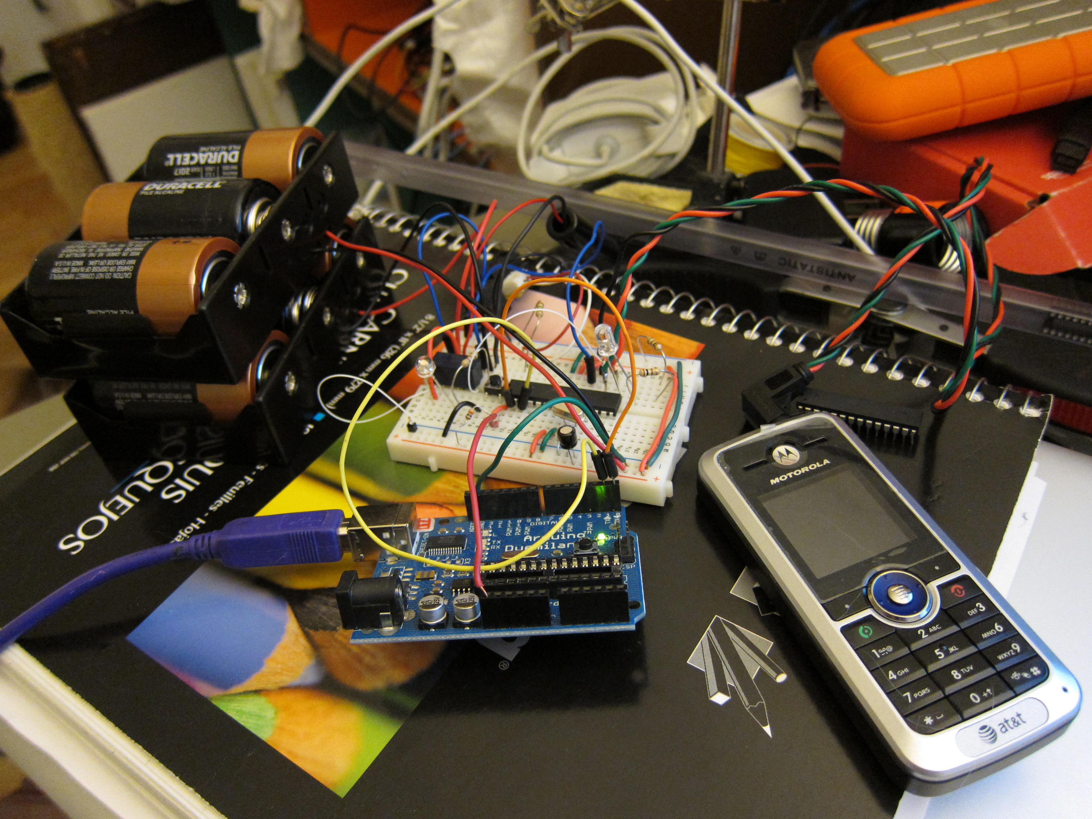 This weekend I’ve been working on the charging circuit for the cell phone attached to the sensor. With the cell phone drawing about 160mA during charging I got about 3.5 days of charging out of the 3 d-cell batteries. I realized that there was a bug in my code that never turned the charging circuit off. Thats fixed now and I’m looking into adding some power regulation to the charge circuit to be able to use all the available power from the batteries as their voltage drops.