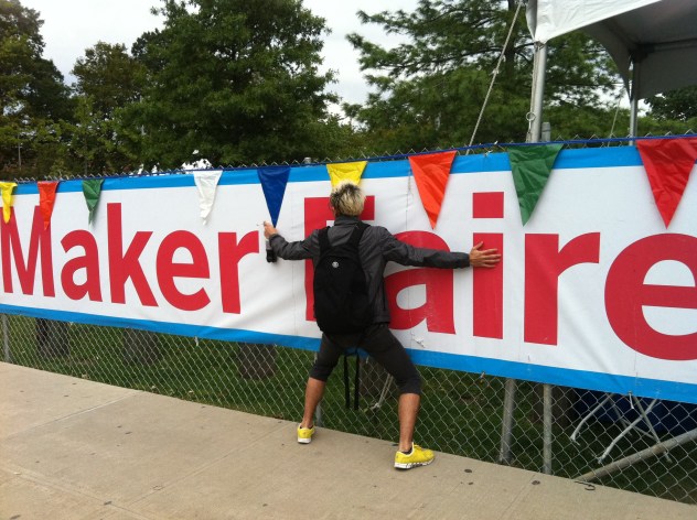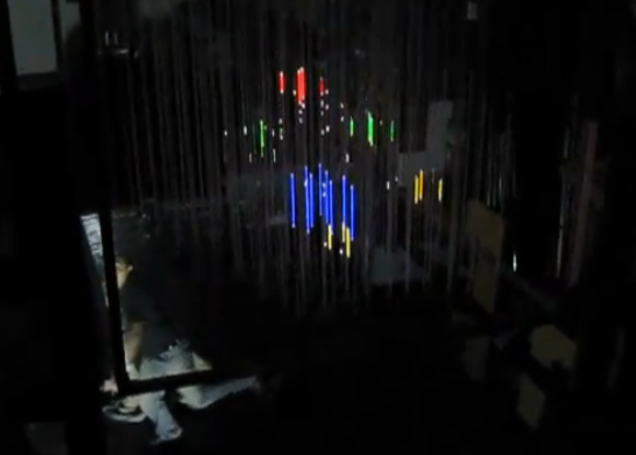 As I entered the indoor section of the Maker Faire, the work that first caught my eyes was the “Lumarca” designed by Matt Parker. Using a projection, Lumarca used a volumetric display to show viewers a three dimensional image in motion. When I first looked at it in the dark, I initially thought that it involved high technology. But once I asked the artist on the mechanism of Lumarca, I realized it was just a calculated projection in motion towards strings attached to boards. When I researched for Lumarca on the internet, I also realized the creators incorporated Kinect into Lumarca. They created a 3d projection portraying the exact movement of somebody moving infront of the Kinect. What’s so interesting is that the Lumarca need not require a 3d glass in order for people to see 3d.