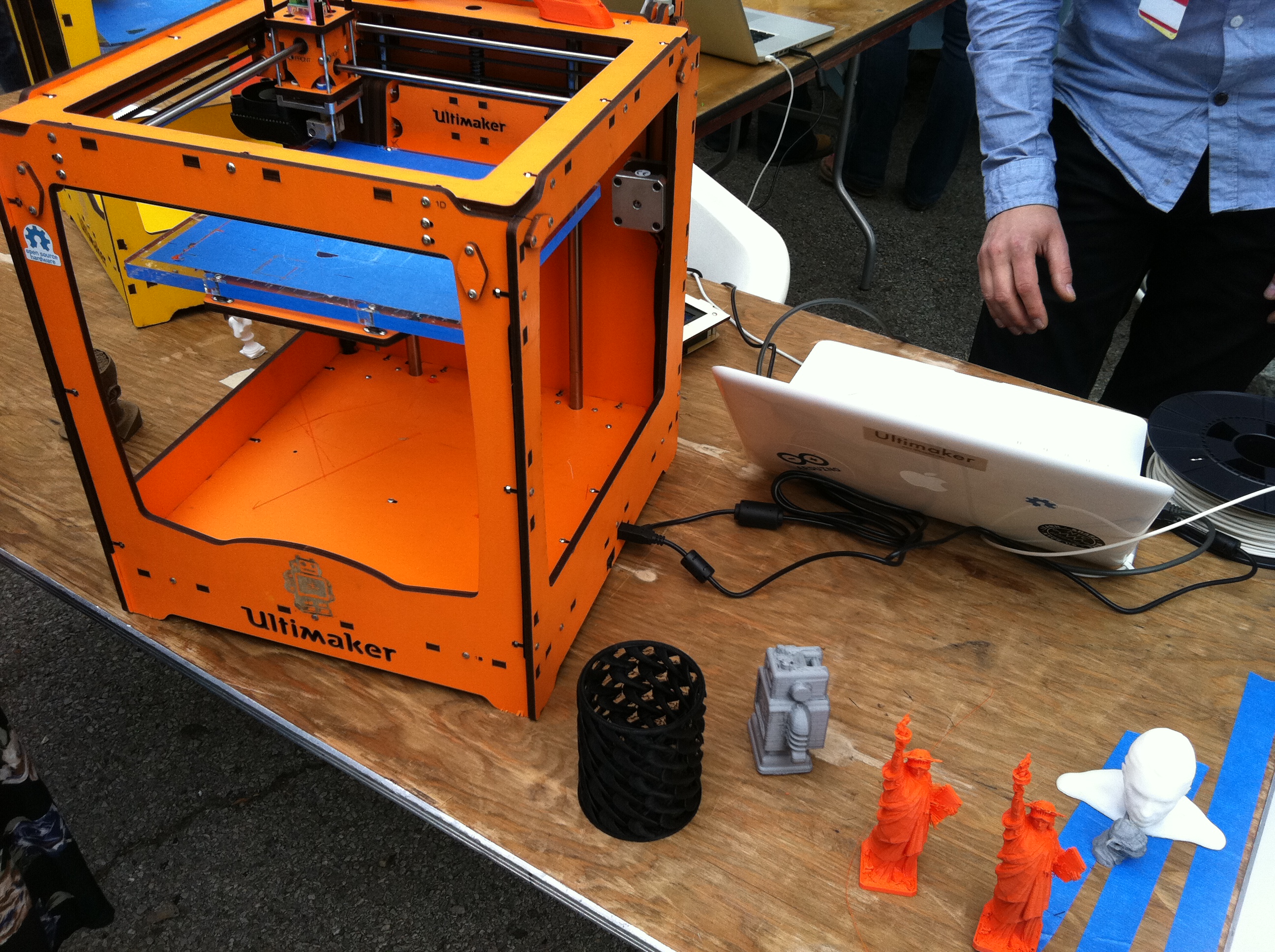 Because I have an industrial design background, every time I passed by a 3d printer, I just wanted to buy it. Just last year, I had paid $2000 to create a fine mockup of one of my product designs in Korea. Seeing that a 3d printer now only costs about $1600 shocks me. There were 3D printers that worked by addition while there were 3D printers that worked by subtraction. Because I’ve already seen many printers that work by subtracting from the raw material, I was more interested on those printers that worked by addition. An example would be the “Ultimaker: the fast, affordable, large build volume, open source 3D printing” made by the Ultimaker. Just like its name, it was indeed a fast, affordable, open source 3d printer. It would accept almost any type of CAD file and would print in such detail that I couldn’t believe it. It created what seemed to me like a billion layers of shape in order to achieve the detail of the final product. It was very fun to see.