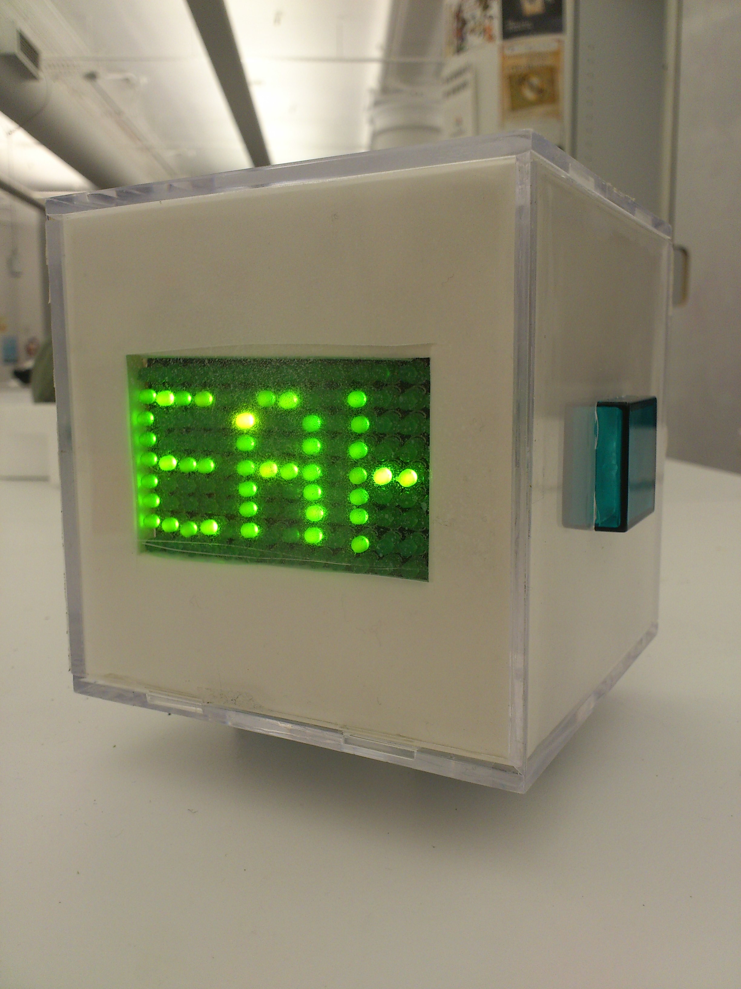 Lucy, the magic-6-cube evolved into Lucy, the good karma night lamp. She wants to make people happy since the moment they wake up. So she turned into a night lamp that sleeps next to you and lights up your life in the darkness. When you wake up, you wake her up, and ask her if you’ll have a good day today. She then asks you to tilt her for your answer… and VOILA! You get your good karma with deep thoughts like “WORD”, “HELL YEAH”, and “BET ON IT”.