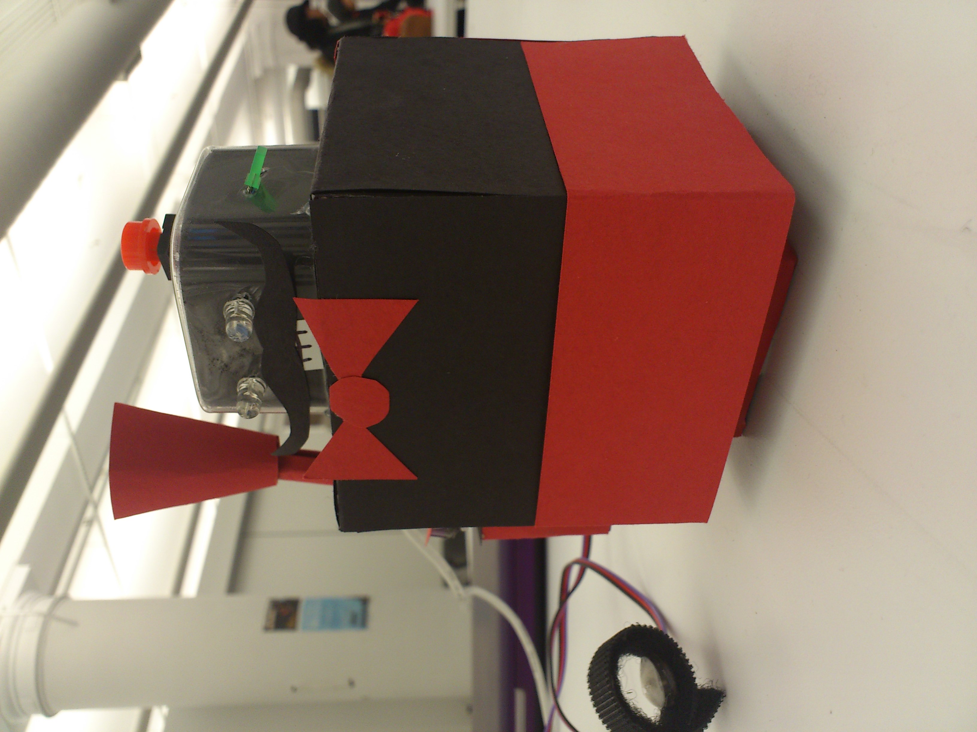 Here are some pictures of the first iteration. He moved his hat and light up with every pulse it sensed.