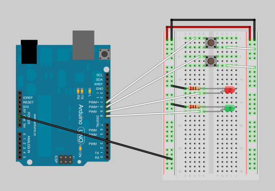 I tried to upload the Fritzing diagram with the Arduino code, but the Fritzing site is down at the moment.