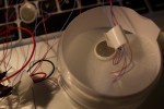 Each cylindrical unit contains an LED, a speaker(I used earbud speakers), and a button. When you press one button it makes a distinct tone, as when you press two buttons simultaneously, or all three. There are five combination of sounds that you can create and one combination that changes the pitch of the tones.