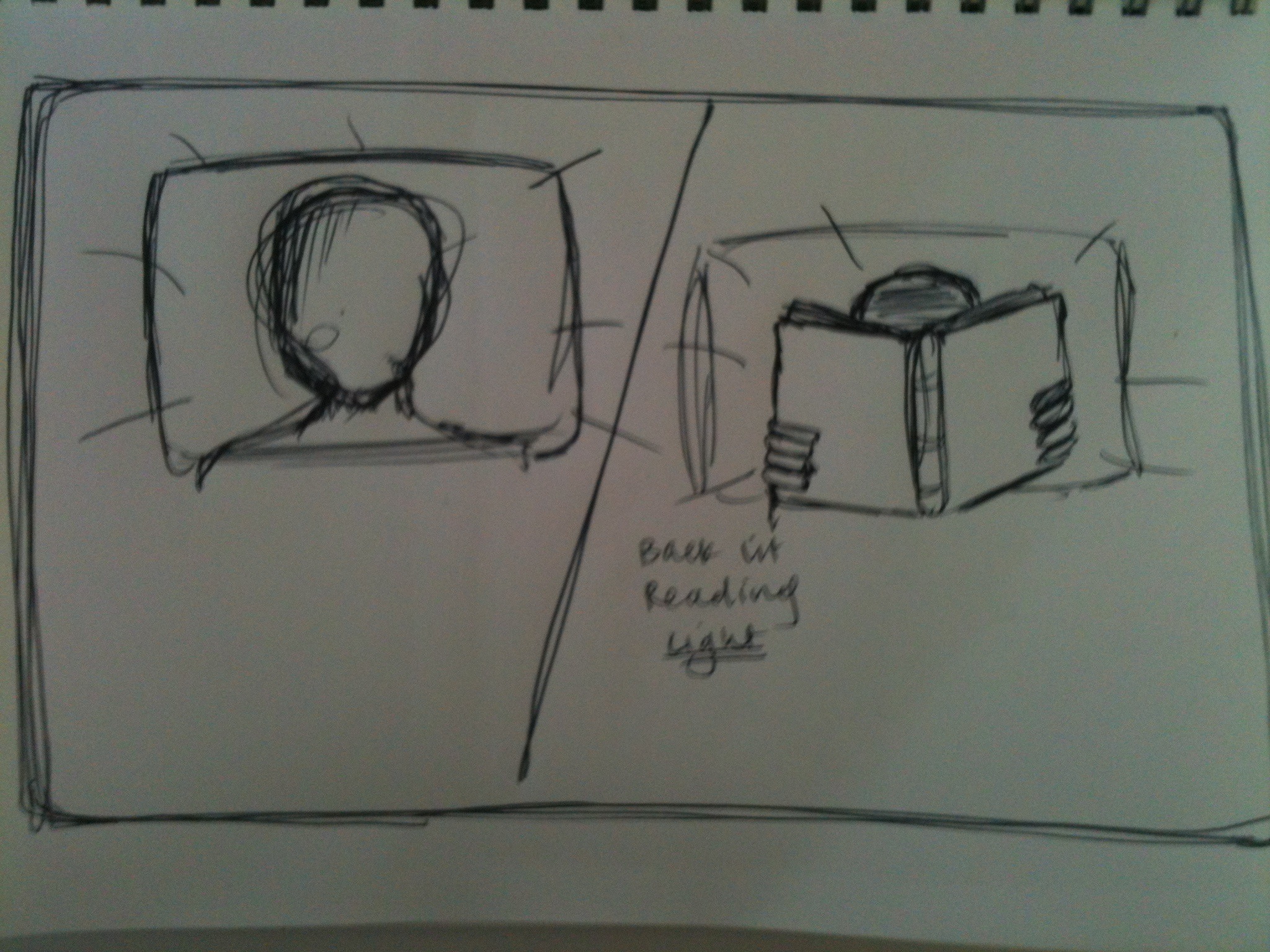 This third idea would be for reading. When I read print books that are not on my tablet I have a difficult time finding a balance with the lighting. If I turn on the room light its too bright and if I use a snap on light the l.e.d. is not diffused and it hurts my eyes. This idea would use lights in a pillow to allow a person to be able to comfortably read in the bed.