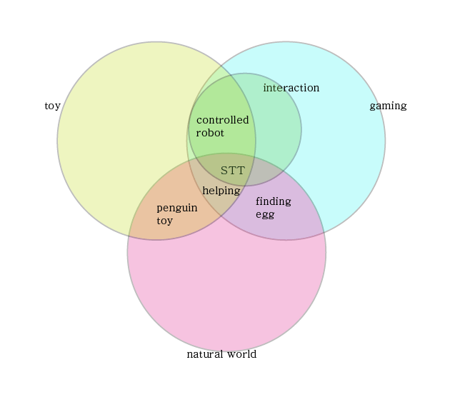 First, here is my venn diagram of domain interest. My domains are: Interaction through motion, Contemporary Art, Behavior of Litters, and Communication through Audio