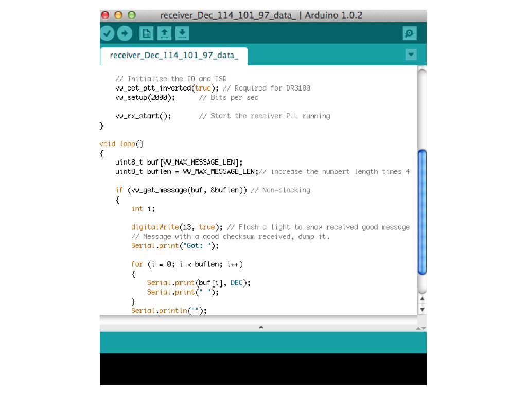 After having played with the Mindflex and understanding the data I embarked on the task to make the headgear wireless using a rx and tx receiver and transmitter. This turned out to be very difficult. I got the transmitter and receiver to communicate in hex code by using the virtual wire library which can be found on my blog. I changed the original code to include the brain library and received DEX (numeric) data. The data the computer received and the order in which it was received it was incorrect. I worked with the code for many days and finally concluded that it must be a problem with the buf and bit length between the two libraries. I hacked the header file for each library but was not able to change the correct areas to make it work. I will be continuing to pursue this task but due to the time limit of the project I ended up continuing to pursue wireless by using the SD card breakout board that can be found on Adafruit.