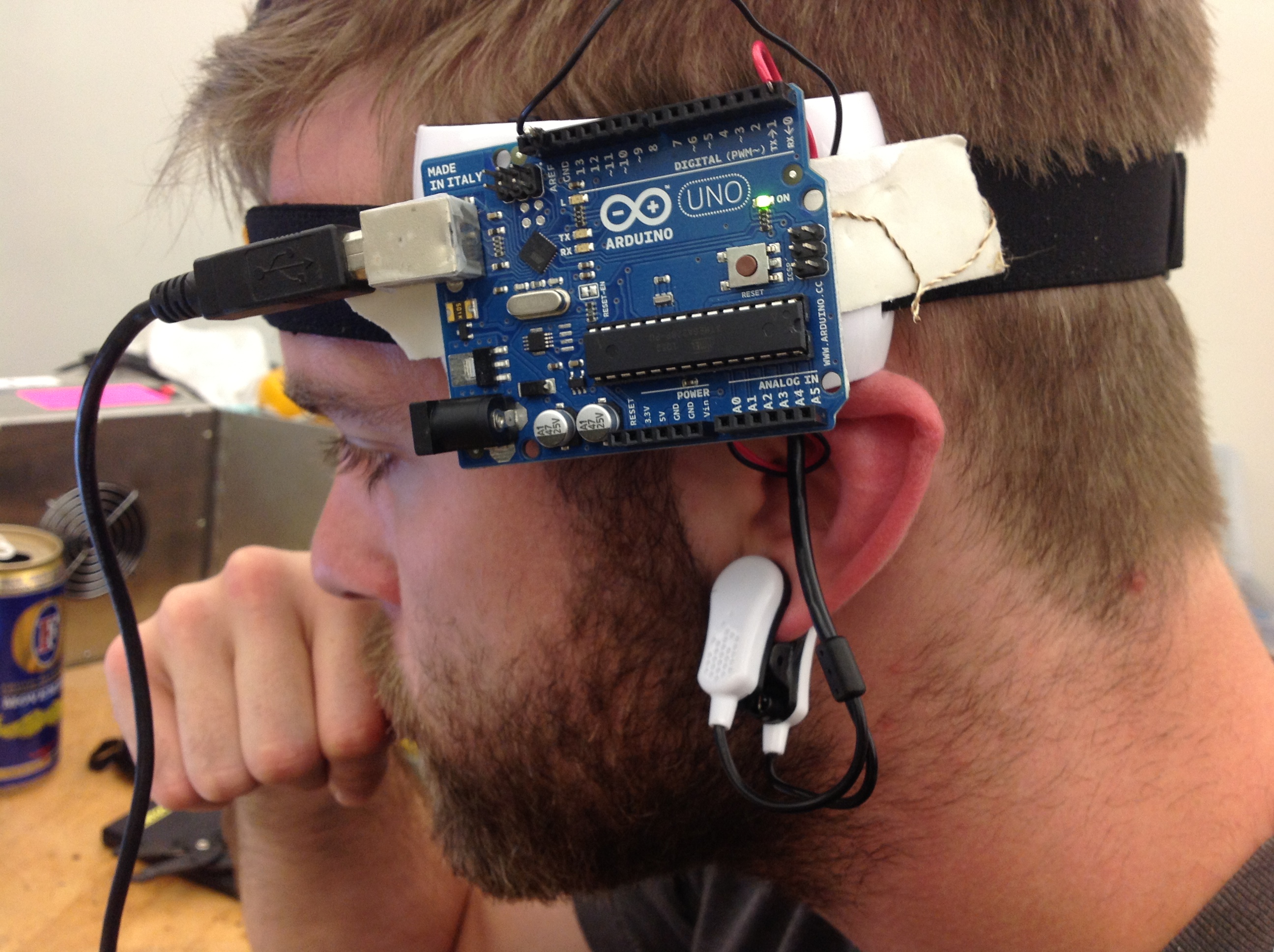 To collect the brain wave EEG data I used a hack that can be found on the link posted on my blog. This hack walks you thorough how to use a Mindflex headwear which is made for a toy by Metal. This toy reads raw EEG signals which then controls a balls action within the game. The key is the Nueroscky chip which is within the Mindflex headgear. There is a pin which you can connect the arduino to receive the data on your computer. The arduino must have its own power source separate from the Mindflex. I then used the brain library, to test the serial read of the EEG reader. Once I got that to work I augmented the example code to make an LED light blink based on the signal strength of the attention information signal.