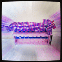 Later Lola realized that in order to watch her dreams that she recorded in the camera she needed another device. She invented the Eye – TV. An artifact that feeds wirelessly from the camera and plays all the pictures as a movie. The screen is very particular. It shoes a roll with all the pictures collaged. The experience of the narrative is surreal and non-linear.