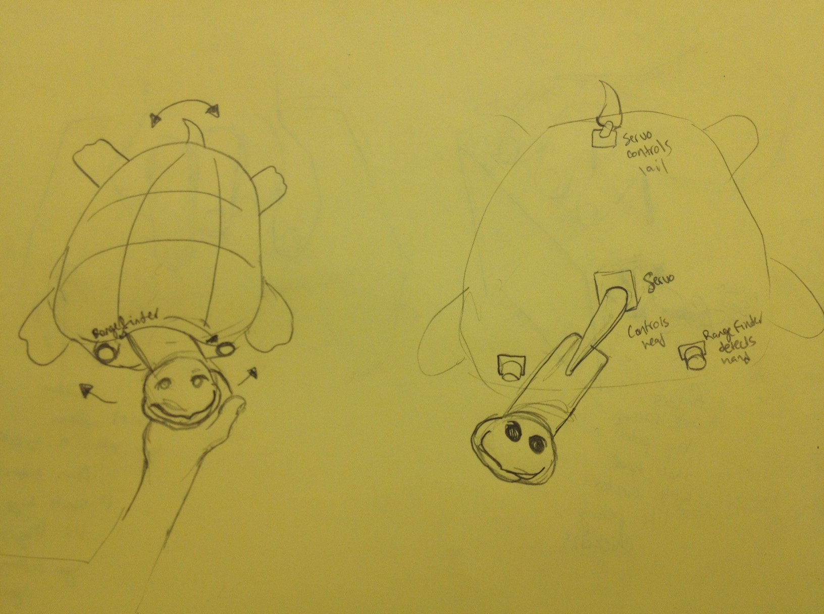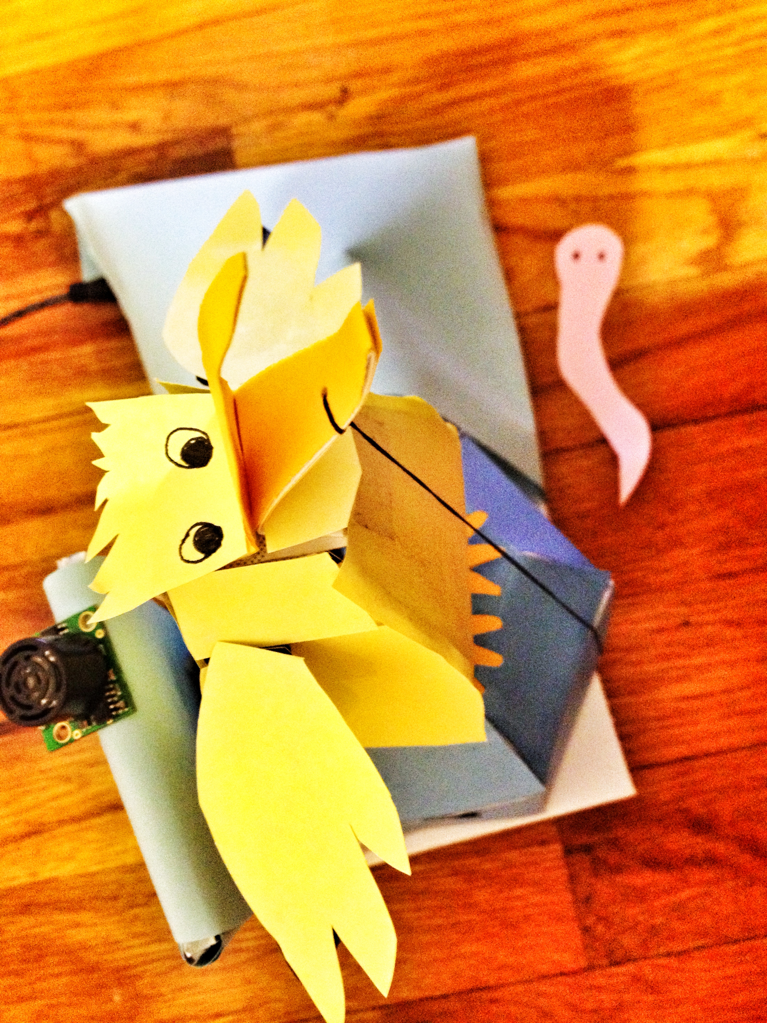 Before I started the project I new that I did not want to merely copy the example in the book but I wanted to adopt it and make something from it. So I kept looking at the motion trying to figure out what else it could be that would make sense with a range finder and thought that a horse or a dog that sped up when its competitors got close in a race made sense so that is what I decided to make. I knew that I didn’t want to just slap another figure on top of the motion from the structure, but wanted to integrate some sort of new movement into the structure, so I built hinges at the dogs knees so that they would bend as he ran. Building this dog actually took a lot of time because I had to start with different models and see if they worked and modify them until I made something that actually bent at the legs. It was also a bit of a challenge to figure out how to get the dogs legs to bend, and I still think that movement could be improved. The challenge I have is that I have to build the whole thing first to see what its movement is like, then take it apart and do it again which ruins aspects of the model in the process.
