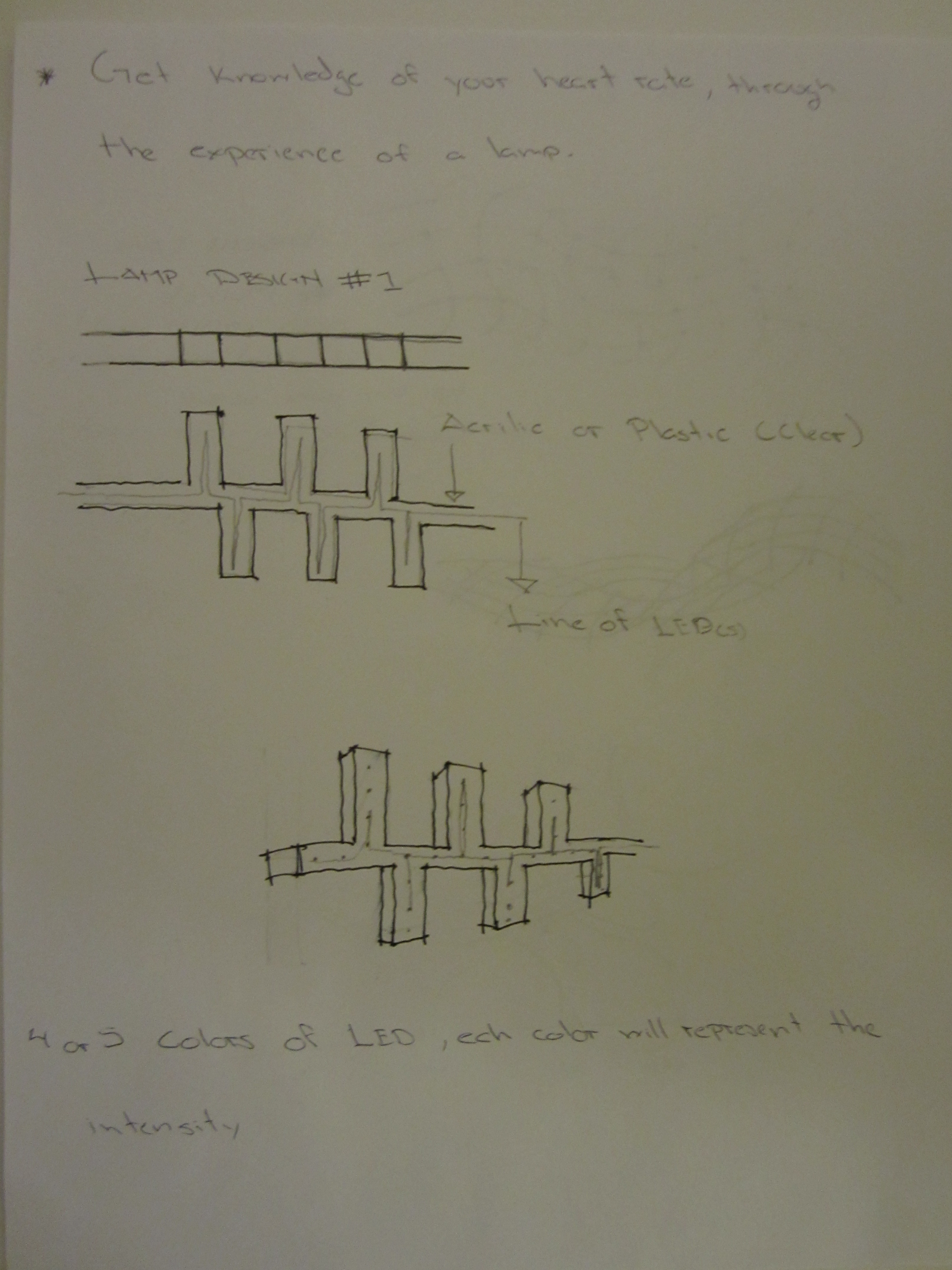 For my midterm project the idea is based on learning about your heart rate through the experience of visual effects created by an artifact (Lamp) mounted by several RGB LED(s).