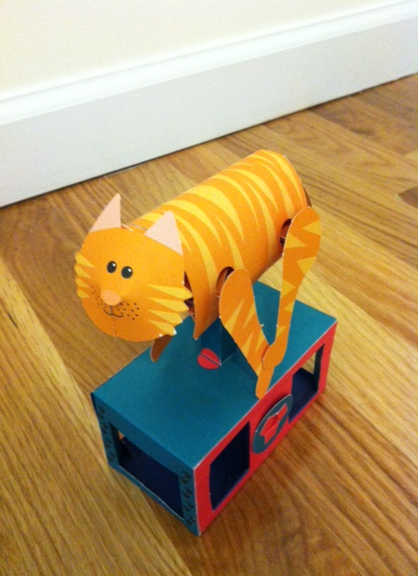 I built this model several times using different weights of paper. At the end I had to tape the parts where it touches and trigger the gears, and then add a piece of foam to make the surface larger.